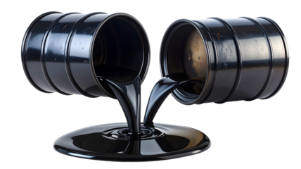 Metal barrel tipped over, spilling dark liquid onto surface, creating reflective puddle. scene conveys sense of industrial use and potential
