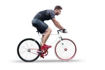 Triathlon male athlete cycle training isolated on transparent background. Practicing in cycling wearing sports equipment. Concept of healthy lifestyle, sport, action, motion, hobby, health