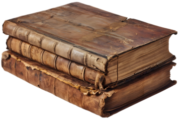 Pile Of Aged Books With Red And Blue Covers Isolated On Transparent Background
