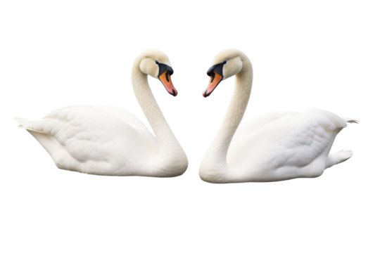 Graceful Ballet of White Swans on a White or Clear Surface PNG Transparent Background..