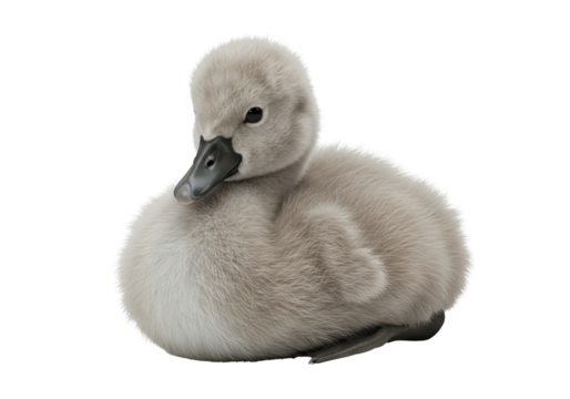 Closeup of a Young Cygnet Grey Downy Feathers Isolated on White isolated on transparent background