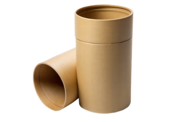 Two cardboard cylindrical packaging tubes, one standing upright and one lying down