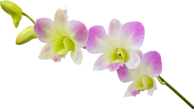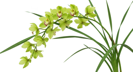 Elegant light green cymbidium orchids blooming branch isolated transparent background