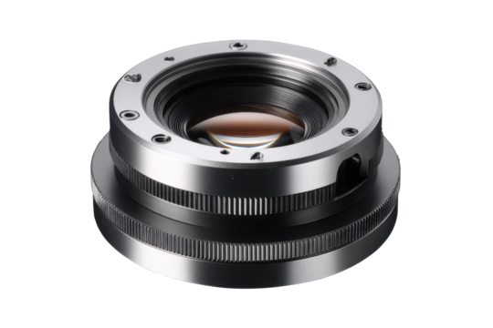 Silver C D disc with rainbow spectrum reflections and blank white label area isolated on a transparent background