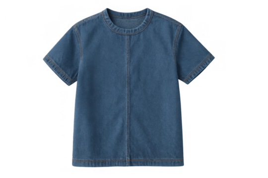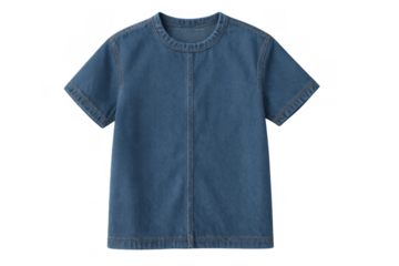 Blue short sleeve denim casual top for women and men, featuring a classic round neck design
