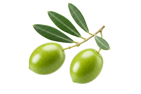 Fresh Green Olives Branch isolated on transparent cutout background, cut out, png