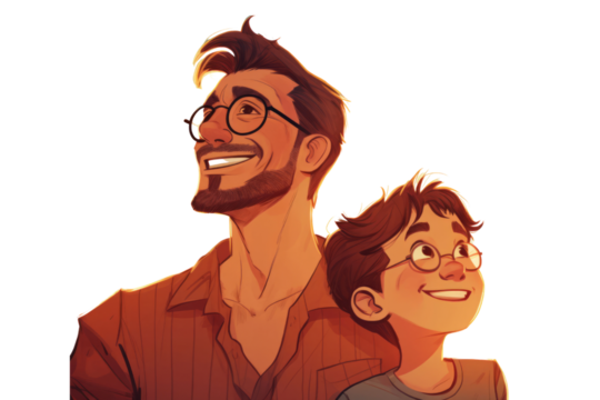 3d boy standing in front of his parents d rendring isolated on white background. Generative Ai.