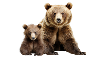Large brown bear and cute bear cub, cut out