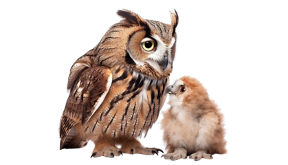 Owl and little cute owlet, cut out