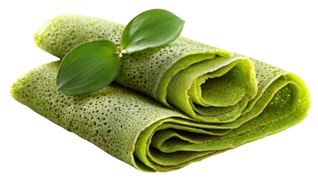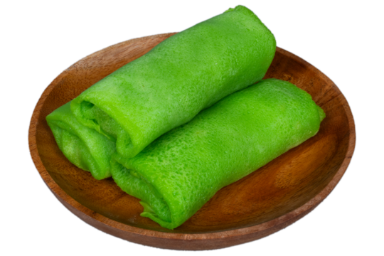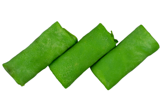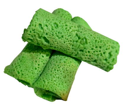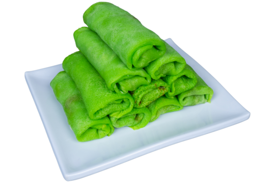 Indonesian dadar gulung green pancake dessert background isolated on a Transparent background, PNG file.