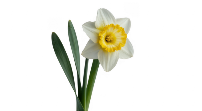 Beautiful daffodils in full bloom showcasing vibrant yellow petals and fresh green leaves in a simple arrangement