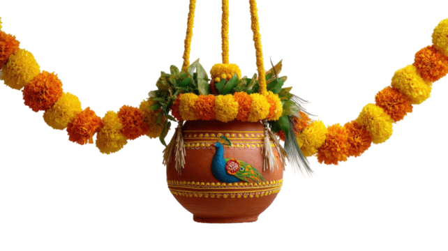 Traditional festive pot dahi decorated with colorful patterns creating a cultural celebration vessel illustration isolated on white background
