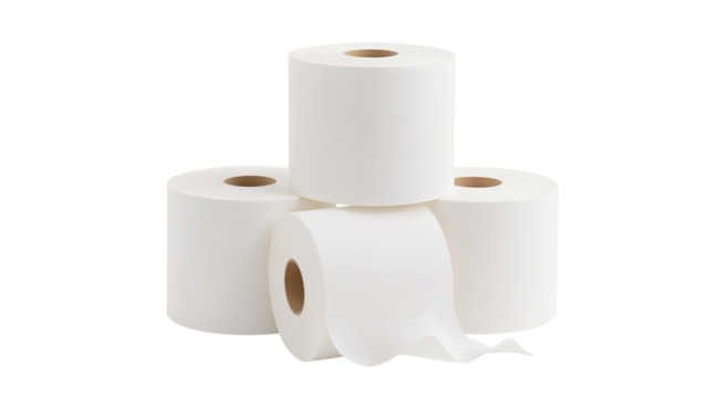A roll of white toilet paper isolated on transparent background, showcasing its texture and form