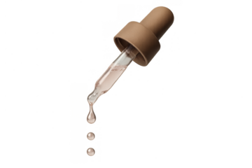 Dropper dispensing a cosmetic serum, showing drops of liquid for skincare and beauty rituals, with a transparent background