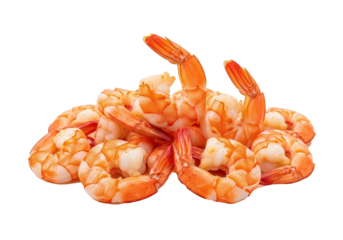 Pile of cooked and peeled shrimps with tails, fresh seafood delicacy isolated on transparent background