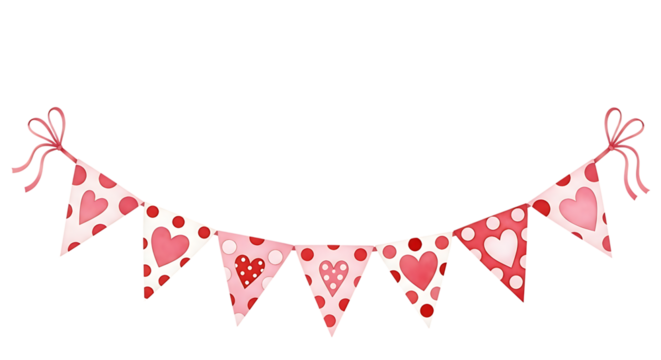 Watercolor Pink and Red Heart Bunting Garland for Celebrations