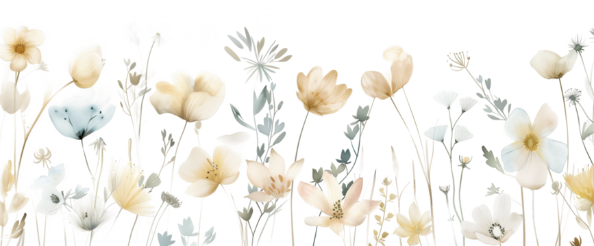 Dainty Wildflower Border Isolated on Transparent Background