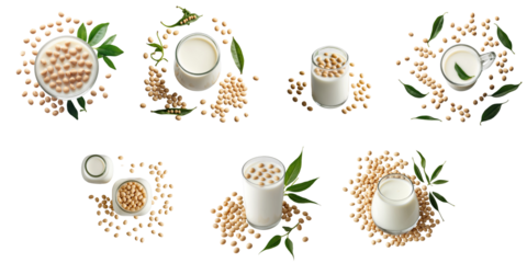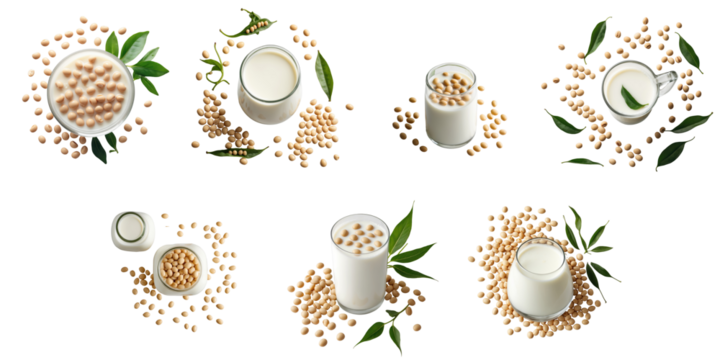 dairy free alternatives coconut milk almond rice milk on transparent background