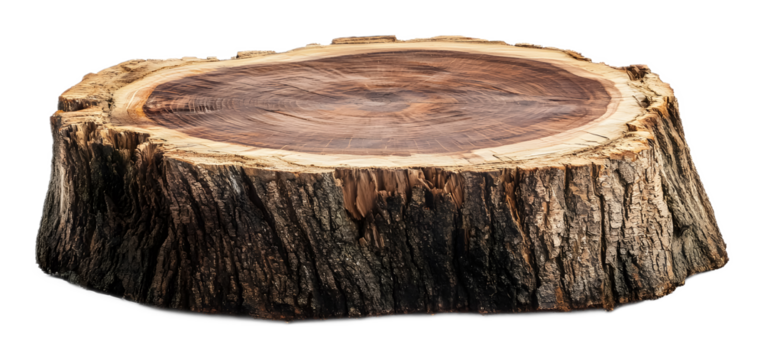 Tree trunk wood podium on a transparent background. isolated background.