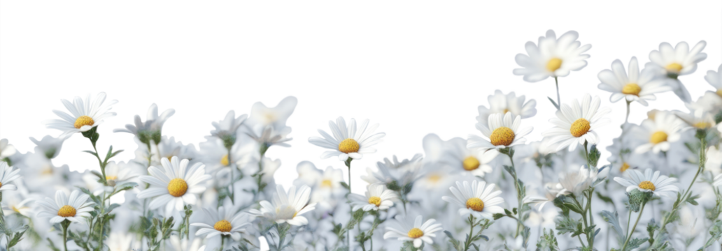 Oxeye daisy flowers meadow web banner isolated cutout on transparent