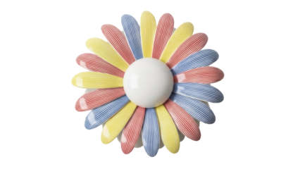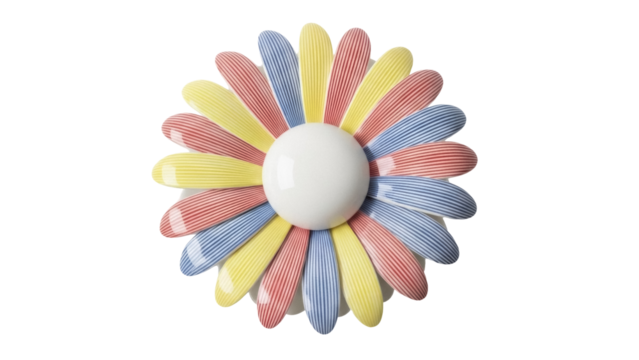 A digitally rendered, isolated close-up of a daisy with white, purple, and yellow hues
