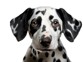 Surprised dalmatian dog, close-up shot. Front view. Isolated on Transparent background.