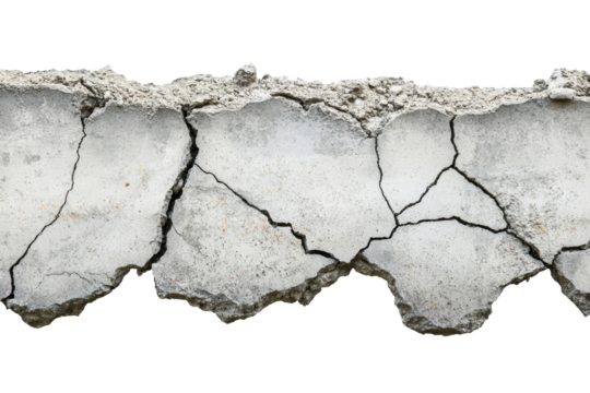 Cracked concrete floor element isolated on a blank background showcasing structural damage and wear patterns for analysis and design purposes