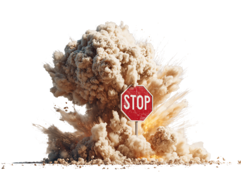 Stop sign on explosion background isolated on transparent or white background, png
