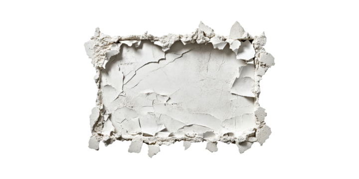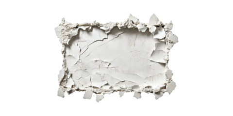 Cracked And Peeling Plaster Wall Texture. Symbol Of Aging And Structural Deterioration Isolated On Transparent Background
