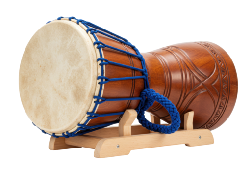 A Sacred Damru Drum with Golden Details Symbolizing Spiritual Energy Isolated on Transparent Background.