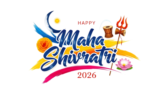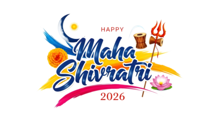 Happy maha shivratri 2026 festival celebration with shiva elements isolated on transparent background