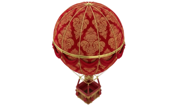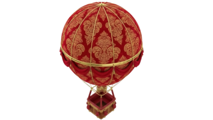 Isolated hot air balloon with red fabric and gold damask pattern, decorative object