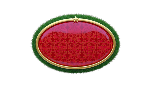 Oval Frame with Red Damask Pattern, Gold Trim, and Green Grass Border