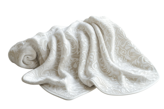 Luxurious Off-white Towel Draped Elegantly, Showcasing An Intricate Floral Damask Pattern, Inviting Ultimate Comfort And Relaxation Isolated on Transparent Background