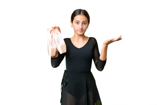 Young woman practicing ballet over isolated chroma key background having doubts while raising hands