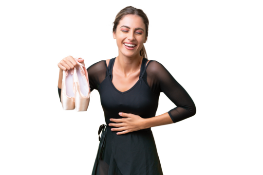 Young English woman practicing ballet over isolated background smiling a lot