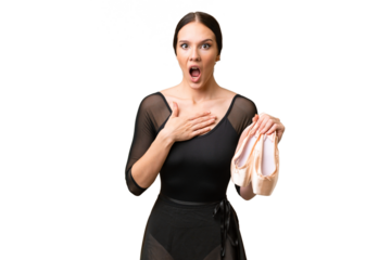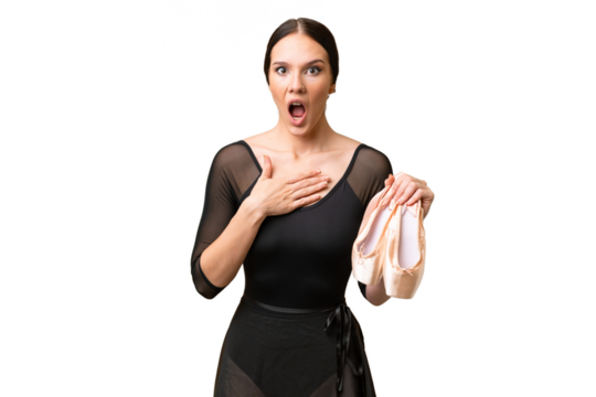 Elegant caucasian ballerina dancing in pink tutu, transparent background