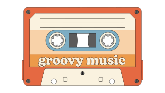 Retro cassette tape with groovy music text, vintage audio nostalgia
