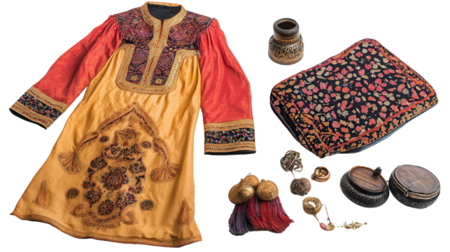 Armenian taraz costume with heritage accessories Transparent background, PNG file