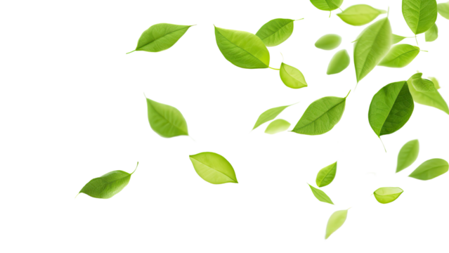 Green Floating Leaves Flying Leaves Green Leaf Dancing, Air Purifier Atmosphere Simple Main Picture, on transparent background, PNG file