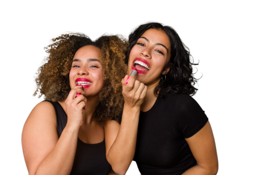 Two best friends, an Afro and Latina, get ready for a night out, laughing and having a great time while getting glam.