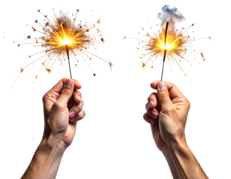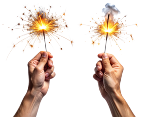 hand holding a sparkler isolated on a transparent background, png. png format with a white background and no text or images in the center of it