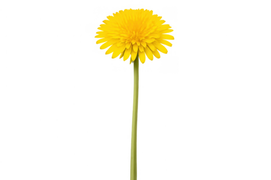Dandelion flower standing tall, yellow wildflower blooming, springtime nature on transparent background