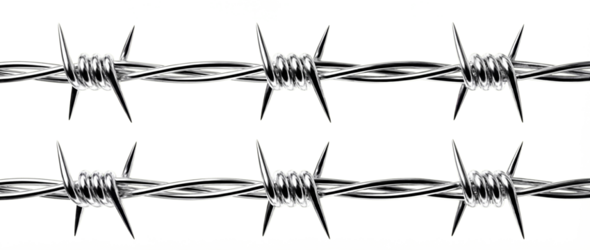 Isolated rows of black barbed wire, each with sharp barbs against a black background