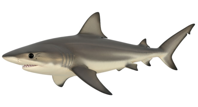 Great white shark PNG isolated on transparent background, powerful predator with sharp teeth for marine life and ocean themes