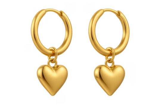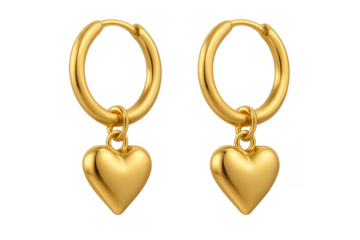 Golden hoop earrings with dangling heart charms