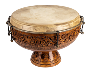Isolated goblet drum showcases geometric patterns, enhancing cultural sound design