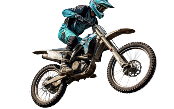 A person defying gravity as they ride a dirt bike through the air. on a White or Clear Surface PNG Transparent Background.