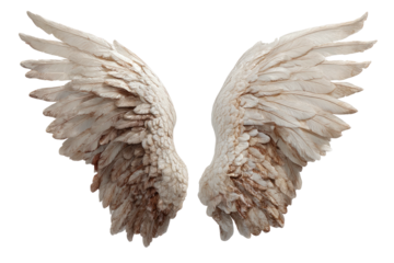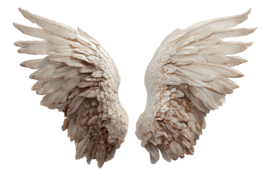 Black angel wings with feather details spread wide majestic dark fantasy mystical powerful supernatural isolated on white background