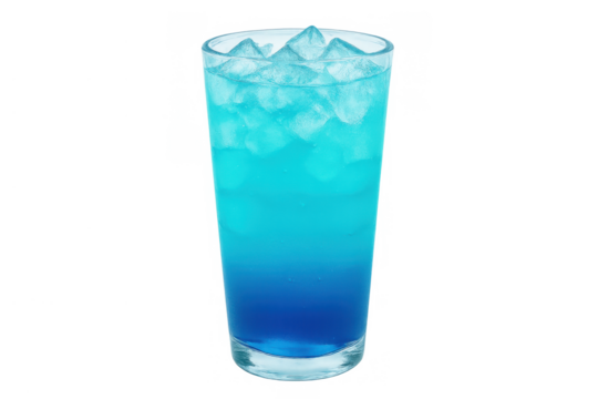 Blue drink with ice filling a tall glass, creating a refreshing light and dark blue gradient, ready for hot weather